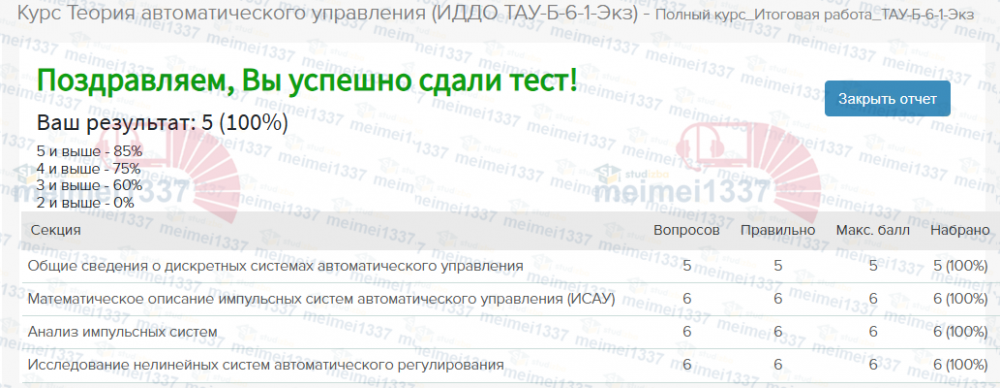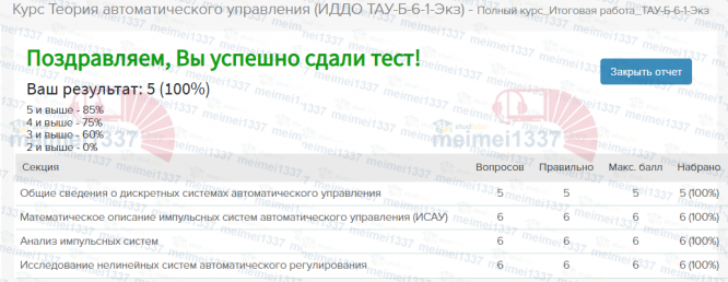 Ответы к экзамену Экзамен: Полный курс_Итоговая работа_ТАУ-Б-6-1-Экз Итоговая работа - 100%