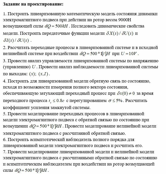 Главная » Учебные материалы » Теория автоматического управления (ТАУ) » Курсовые работы » МАИ » Несколько классов/семестров » Вариант 18 » Система управления электромагнитным подвесом ротора двигательной установки при воздействии случайного возмущения