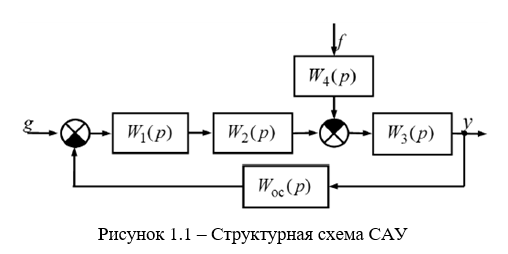 Дана структурная схема системы автоматического управления (САУ), приведённая на рисунке 1.1