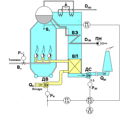 Для студентов СПбГУПТД по предмету Теория автоматического управления (ТАУ)3.3. Система автоматического регулирования разряжения в топке барабанного котла3.3. Система автоматического регулирования разряжения в топке барабанного котла