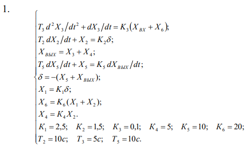 По заданной системе дифференциальных уравнений, описывающих работу САУ необходимо: