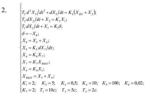 По заданной системе дифференциальных уравнений, описывающих работу САУ необходимо: