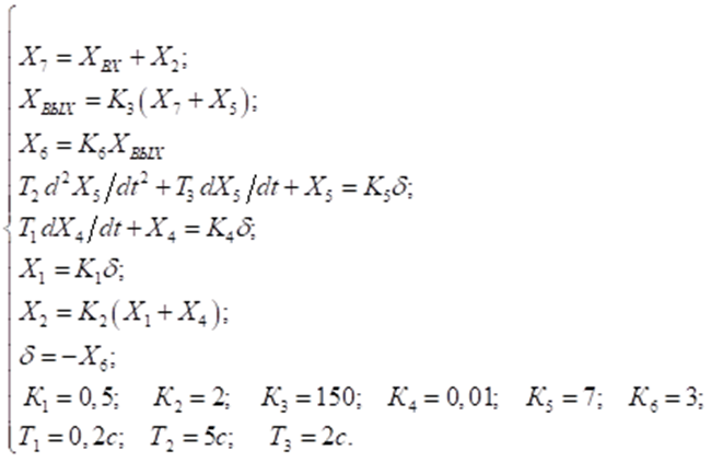 По заданной системе дифференциальных уравнений, описывающих работу САУ необходимо: