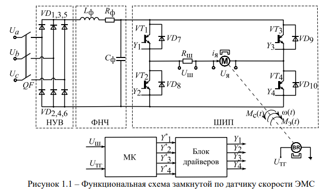 1. Настроить математическую модель замкнутой электромеханической системы «ШИП-ДПТ НВ» с электродвигателем, приведённым в техническом задании.
