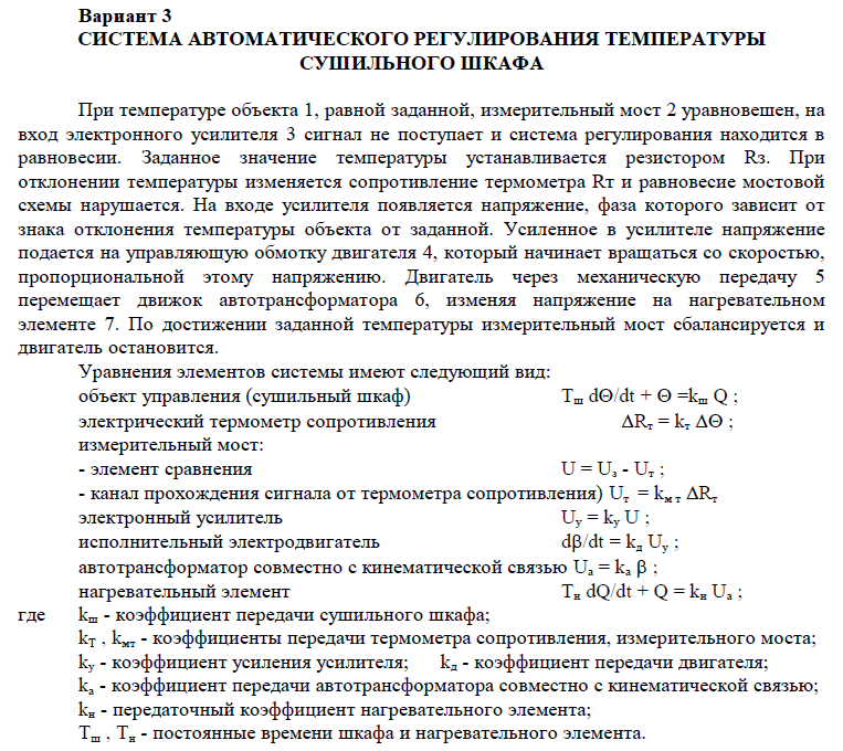 Курсовая работа 3: Система автоматического регулирования температуры сушильного шкафа вариант 5
