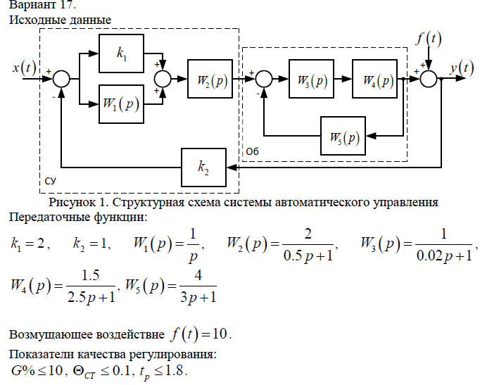 Выполнение курсового; ИрНИТУ; Анализ и синтез системы автоматического управления, Вариант 1-17