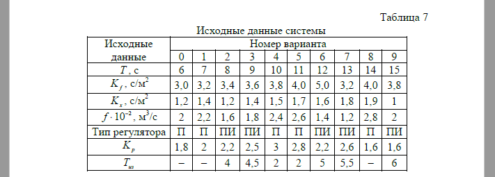 -рассчитать и построить кривую переходного процесса у(0 в системе с АР при скачкообразном изменении возмущения на величину;
