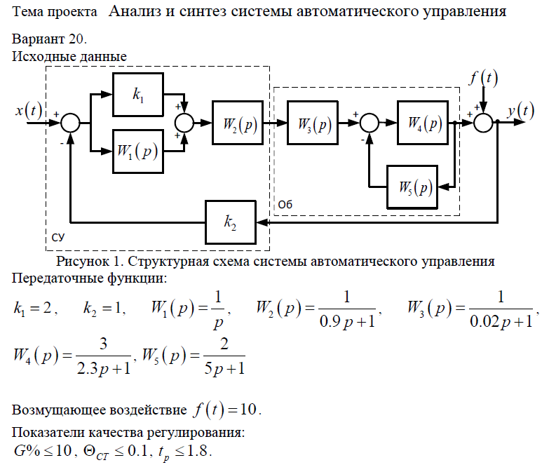 Выполнение курсового; ИрНИТУ; Анализ и синтез системы автоматического управления, Вариант 1-20