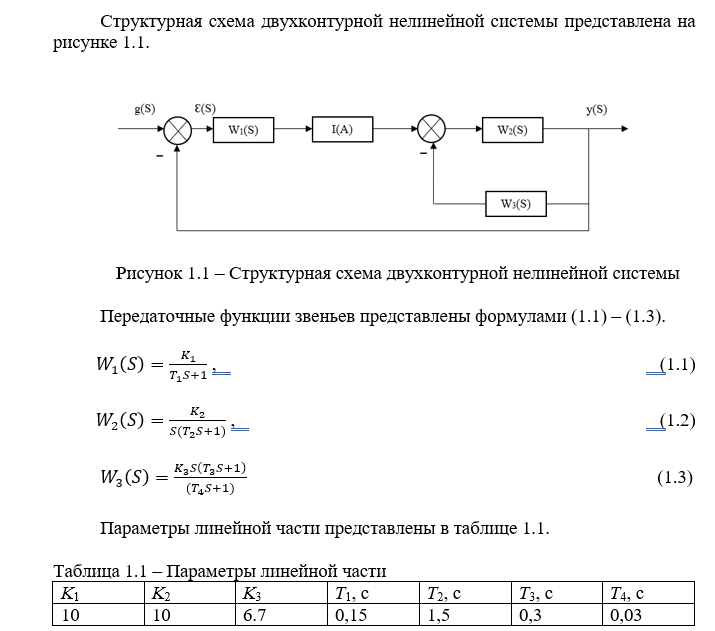 Целью курсовой работы является исследование влияния нелинейных элементов на устойчивость и качество переходного процесса двухконтурной САУ.