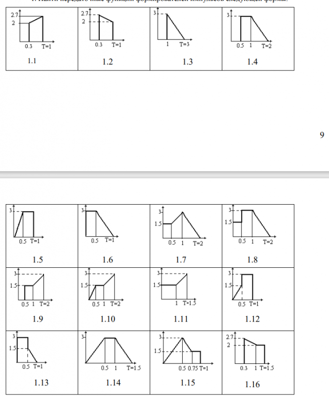 Найти передаточные функции формирователей импульсов следующей формы: