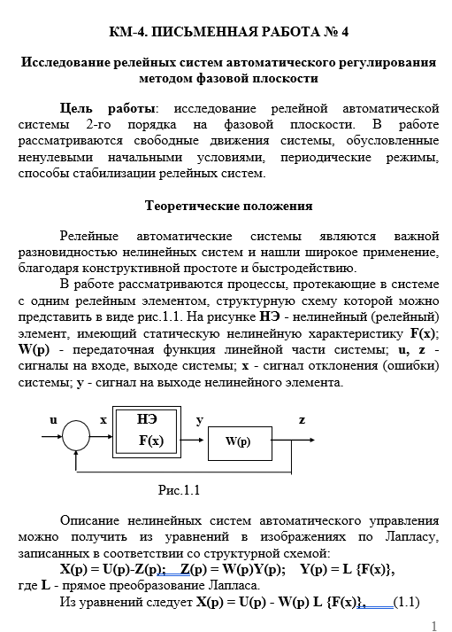 Услуга: Помощь с выполнением - КМ-4. Исследование релейных систем автоматического регулирования методом фазовой плоскости. Решение задач