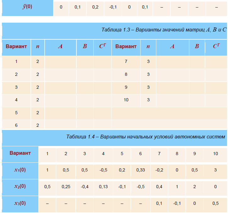 воздействием и ненулевыми начальными условиями, заданными в таблице 1.2. На экран
