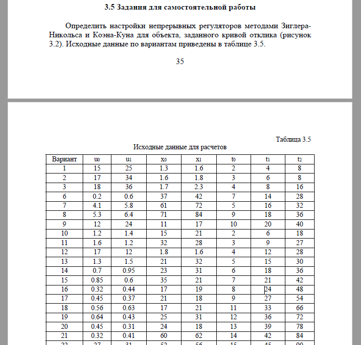 Практическая работа №3 по дисциплине Теория автоматического управления; ТИУ; Расчет настроек регуляторов для объекта, заданного кривой отклика. Метод Зиглера-Никольса и Коэна-Куна. Вариант 6