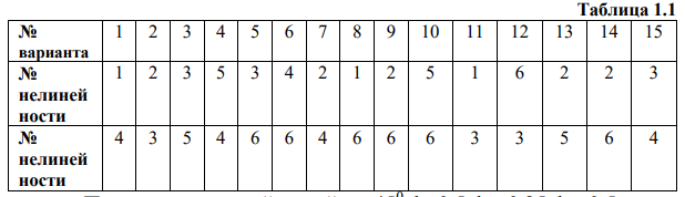 1. Построить амплитудно-фазовую характеристику линейной части системы Wл(jω), показанной на рис. 1.5, с параметрами из табл. 1.3, определяемыми в соответствии с номером варианта. (Для однозначных нелинейностей рекомендуется строить характеристику Lл(ω)).