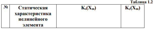 2. На том же графике построить инверсный годограф нелинейного статического элемента, заданного в табл. 1.1 с параметрами, заданными 7 в табл. 1.2 в соответствии с номером варианта. (Для однозначных нелинейностей – характеристику - Lн(Xm)).