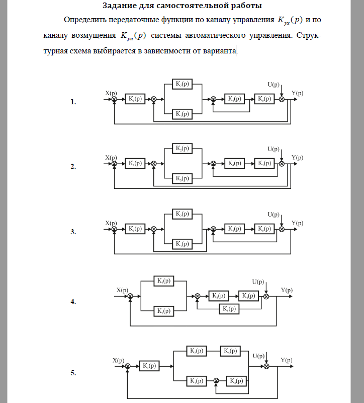 Определить передаточные функции по каналу управления Кyx( p) и по каналу возмущения Kyu( p) системы автоматического управления. Структурная схема выбирается в зависимости от варианта