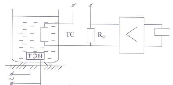 Сделать расчет параметров переходного процесса автоматической системы регулирования при определенных параметрах АСР в установившемся соотношении. Ниже приводится методика подобного расчета. Рассмотреть систему, состоящую из объекта, в котором поддерживается температура с помощью двухпозиционного регулятора в заданных пределах (рис. 17). Объект является дифференцирующим звеном.