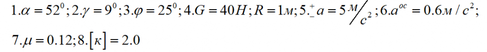 Установить возможность перемещения объекта манипулирования круглого сечения при направлениях его перемещения: I – перпендикулярно к его оси и II – приосевой под углом φ к горизонту в открытом одноместном схвате с углом призмы 2α, ускорениями α=+-αпр и αос при горизонтальном расположении схвата (γ=0) и при γ=γ0 для трех вариантов αпр и для двух αпрос.