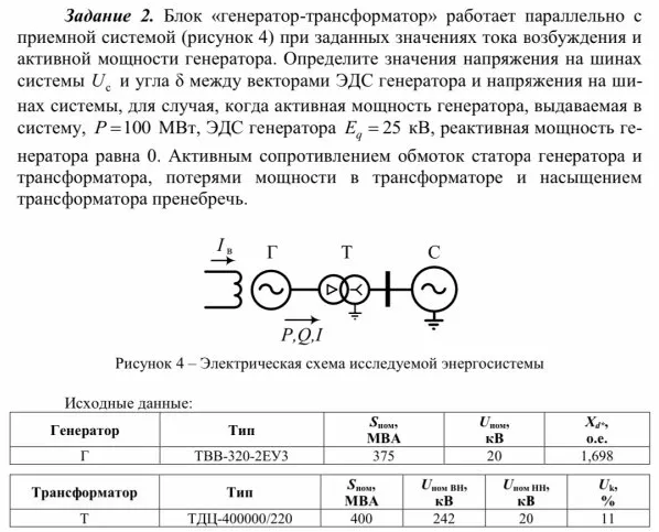 Для студентов ИГЭУ им. Ленина по предмету Теория автоматического управления (ТАУ)Определите значения напряжения на шинах системы Uc и угла δ между векторами ЭДС генератора и напряжения на шинах системы, для случая, когда активная мОпределите значения напряжения на шинах системы Uc и угла δ между векторами ЭДС генератора и напряжения на шинах системы, для случая, когда активная м