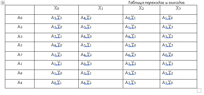 2. Таблица переходов и выходов………………………………………………………………………………3