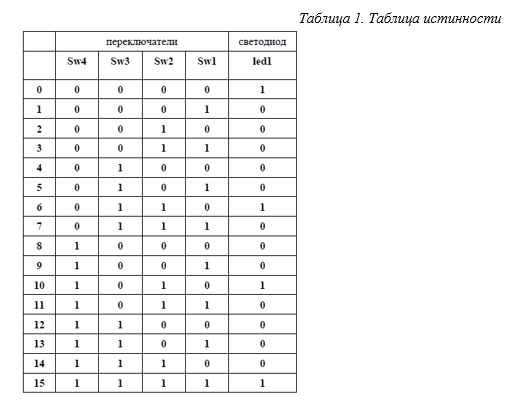 • На выходы led8, led7, led6, led5, led4, led3, led2 подать логические нули;