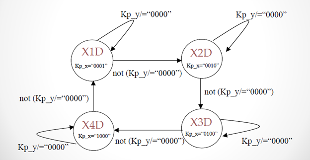 Описать на языке VHDL автомат управления сканером клавиатуры граф переходов, которого приведен на рис.