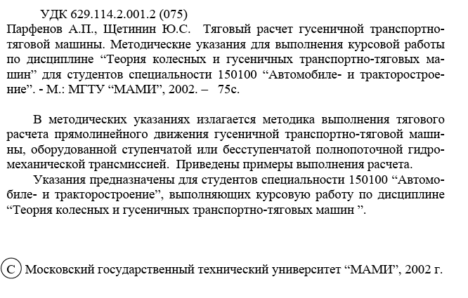 Книга: Методические указания для выполнения курсовой работы по курсам «Теория колесных и гусеничных транспортно-тяговых машин»