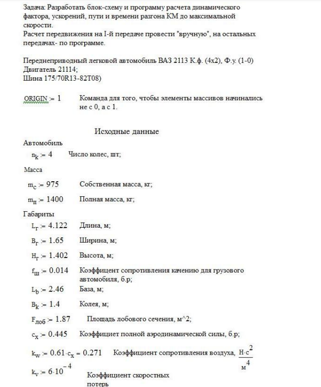 ДЗ: Домашнее задание №1 (Тягово-динамический расчет)