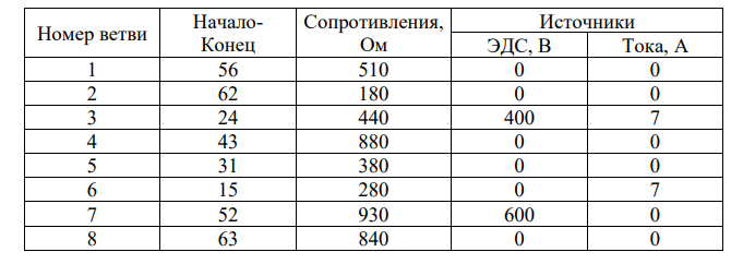 7. Определение токов в ветвях исходной схемы методом законов Кирхгофа.