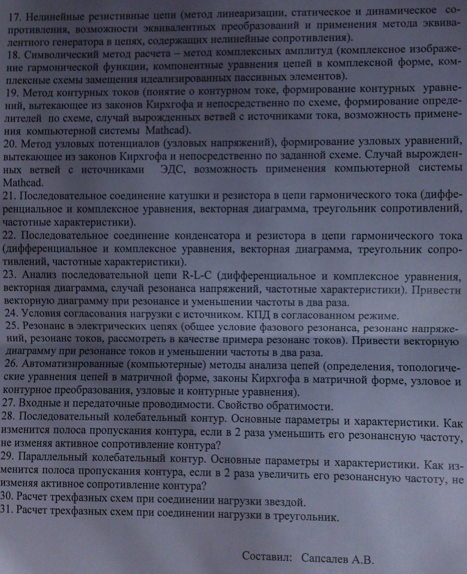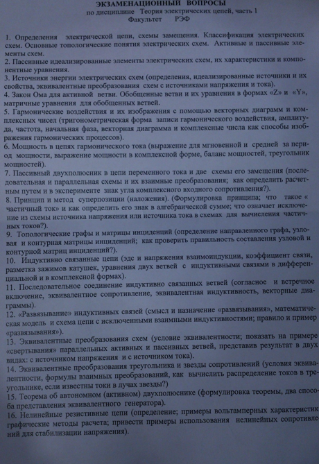 Для студентов НГТУ по предмету Теория электрических цепей (ТЭЦ)Экзаменационные вопросыЭкзаменационные вопросы