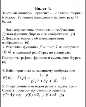 Для студентов МГТУ им. Н.Э.Баумана по предмету Теория функций комплексного переменного (ТФКП) РК №2 по ОИ Вариант №4 РК №2 по ОИ Вариант №4