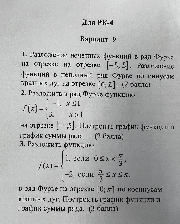 Ответы к контрольной работе 1: Разбор всех типовых заданий РК "Ряды Фурье" для РК4