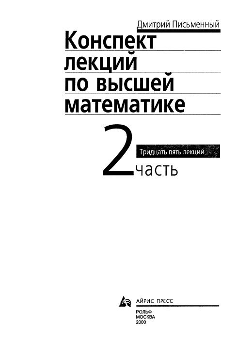 Книга: Письменный Д.Т. - Конспект лекций по высшей математике