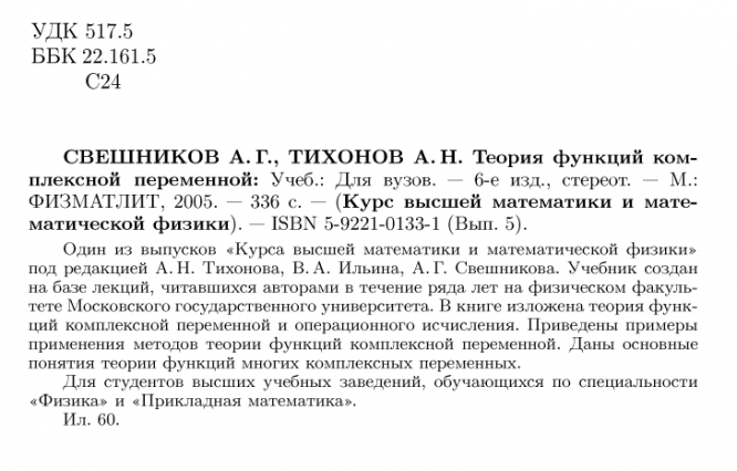 Главная » Учебные материалы » Теория функций комплексного переменного (ТФКП) » Книги » МГТУ им. Н.Э.Баумана » 4 семестр » Свешников А.Г., Тихонов А.Н. - Теория функций комплексной переменной