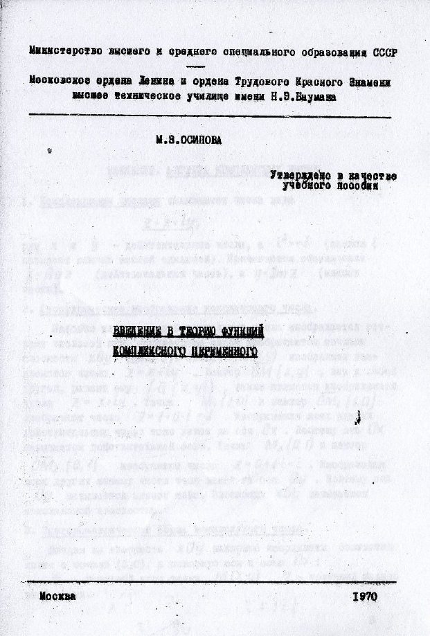 Главная » Учебные материалы » Теория функций комплексного переменного (ТФКП) » Книги » МГТУ им. Н.Э.Баумана » 4 семестр » М.З. Осипова - Введение в теорию функций комплексного переменного