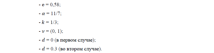 Качественное исследование решений системы дифференциальных уравнений специального вида с дополнительным условием в фазовой плоскости (e = 0.58, alpha = 1.57142, k = 0.(33), v = (0,1), d = 0, d = 0.3)