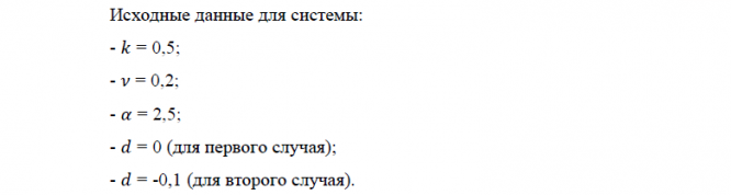 Главная » Учебные материалы » Теория функций комплексного переменного (ТФКП) » Курсовые работы » МГТУ им. Н.Э.Баумана » 4 семестр » Качественное исследование решений системы дифференциальных уравнений специального вида с дополнительным условием в фазовой плоскости (k = 0.5, v = 0.2, alpha = 2.5, d = 0, d = -0.1)