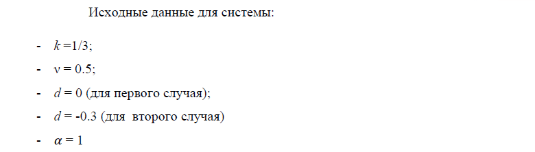 Главная » Учебные материалы » Теория функций комплексного переменного (ТФКП) » Курсовые работы » МГТУ им. Н.Э.Баумана » 4 семестр » Качественное исследование решений системы дифференциальных уравнений специального вида с дополнительным условием в фазовой плоскости (k = 0.333, v = 0.5, d = 0, d = -0.3, alpha = 1)