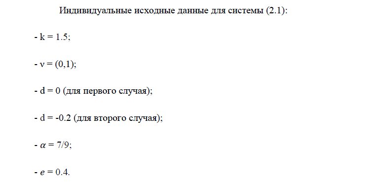 Главная » Учебные материалы » Теория функций комплексного переменного (ТФКП) » Курсовые работы » МГТУ им. Н.Э.Баумана » 4 семестр » Качественное исследование решений системы дифференциальных уравнений специального вида с дополнительным условием в фазовой плоскости (k = 1.5, v = (0,1), d = 0, d = -0.2, alpha = 0.(77), e = 0.4)