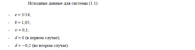 Главная » Учебные материалы » Теория функций комплексного переменного (ТФКП) » Курсовые работы » МГТУ им. Н.Э.Баумана » 4 семестр » Качественное исследование решений системы дифференциальных уравнений специального вида с дополнительным условием в фазовой плоскости (e = 0.21428, k = 1.05, v = 0.1, d = 0, d = -0.2)