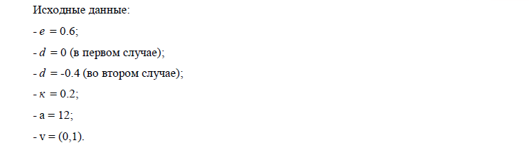 Главная » Учебные материалы » Теория функций комплексного переменного (ТФКП) » Курсовые работы » МГТУ им. Н.Э.Баумана » 4 семестр » Качественное исследование решений системы дифференциальных уравнений специального вида с дополнительным условием в фазовой плоскости (e = 0.6, d = 0, d = -0.4, k = 0.2, alpha = 12, v = (0,1))