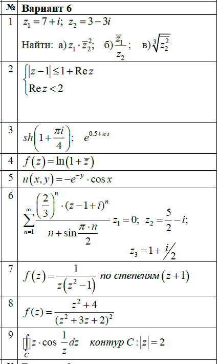 ДЗ 1: Теория функций комплексного переменного вариант 6