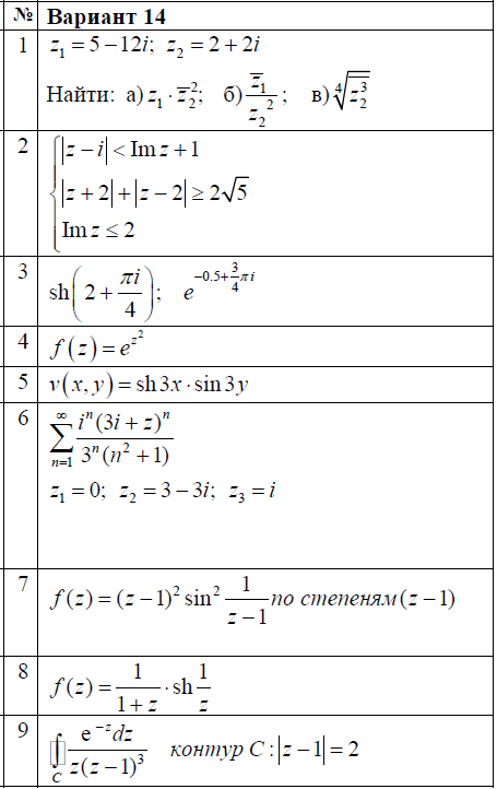ДЗ 1: Теория функций комплексного переменного вариант 14