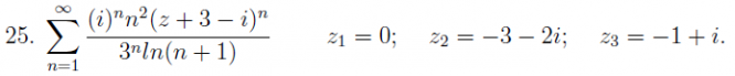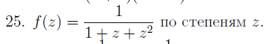 Убедиться, что найденная функция регулярна и удовлетворяет заданному условию. В условии задачи: через ux, y обозначается вещественная, а через vx, y - мнимая часть искомой регулярной функции. Задача 6. Определить круг сходимости заданного степенного ряда. Сходится ли ряд в заданных точках z1, z2 , z3 ? Сходится ли заданный степенной ряд в крайних левой, правой, верхней и нижней точках круга сходимости. Если сходится, то как - абсолютно или условно? Сделать рис. Задача 7. Найти все разложения заданной функции по степеням заданной разности  z  a. Указать области пригодности каждого из разложений. Задача 8. Найти все особые точки заданной функции, определить их характер и найти вычеты в них.