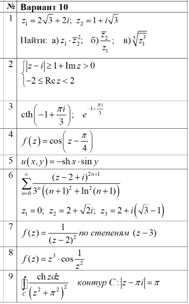 ДЗ 1: Теория функций комплексного переменного вариант 10