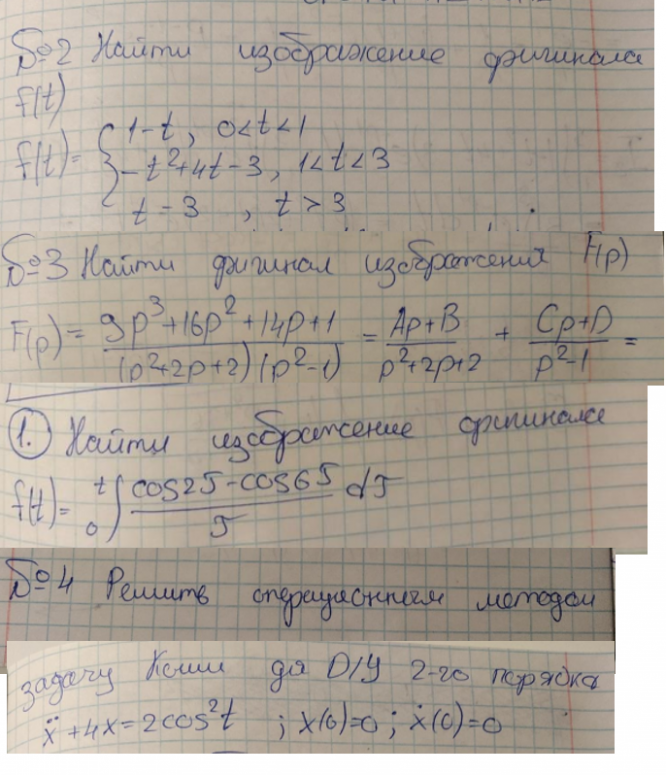 Типовой расчет по ТФКП №2 "Операционное исчисление", 4 задачи, зачтен на максимальный балл