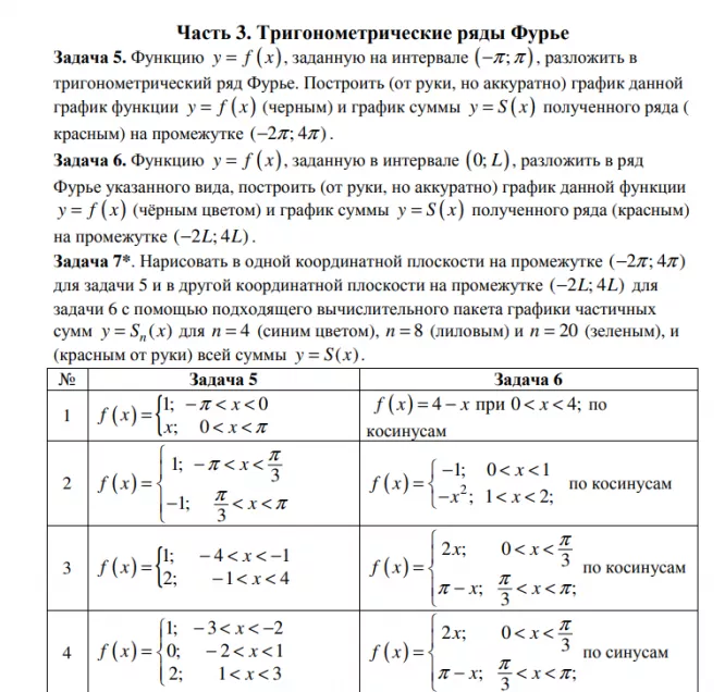 ДЗ 3: Тригонометрические ряды Фурье вариант 4