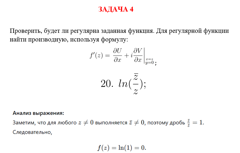 ДЗ 1: Теория функций комплексного переменного вариант 20