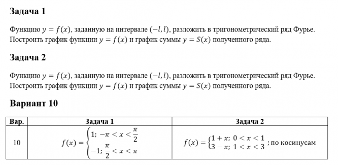 ДЗ 3: Ряды Фурье вариант 10
