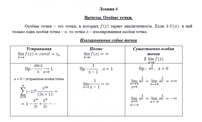 Для студентов МГТУ им. Н.Э.Баумана по предмету Теория функций комплексного переменного (ТФКП)Вычеты. Особые точкиВычеты. Особые точки